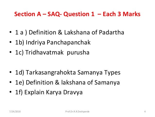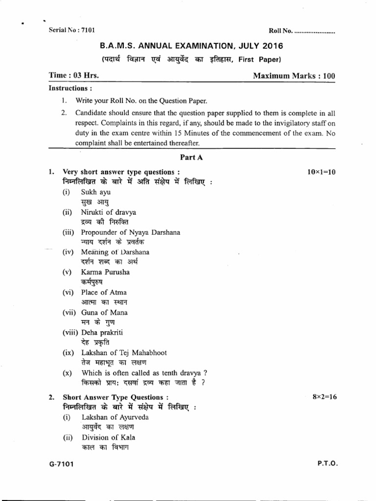Padarth vigyan question paper. BAMS 1st Year - All Subjects Books Free PDF Download. D Write the Lakshana and types of Vishesha. Shaktah saabhiprayo varno varnasamooh va padam - Group of letters having the capacity to tell the meaning is called Pada.